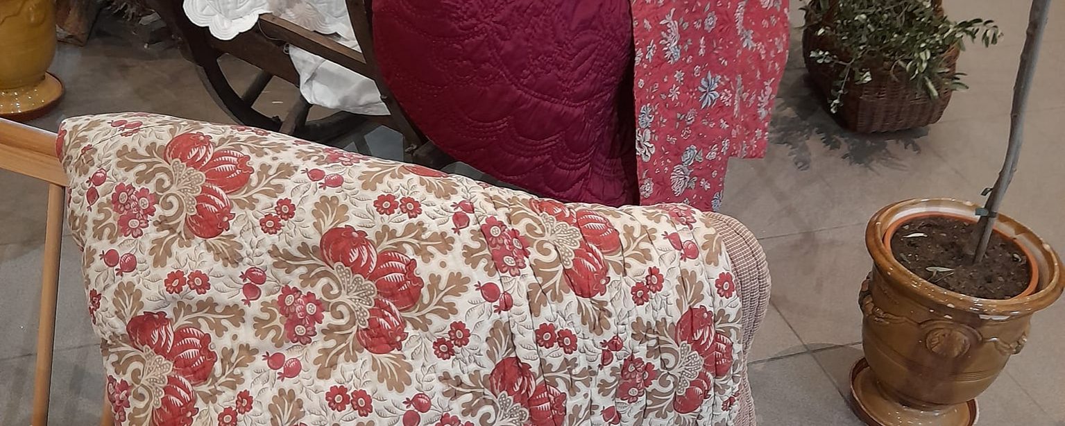 BOUTIS EN FETE 2024 La fête a eu beaucoup de succès, les visiteurs ont apprécié la décoration, les boutis, les jupons et couvertures en piqué marseillais. Les démonstrations de nos artisans d’art, sabrage de rubans de velours, broderies blanches, tressage de paille, boutis, piqué marseillais, indiennage ont beaucoup plu et intéressé nos visiteurs. La conférence de l’association Trésors Patrimoine étoffes a attiré un public de connaisseurs et amoureux du costume provencal.